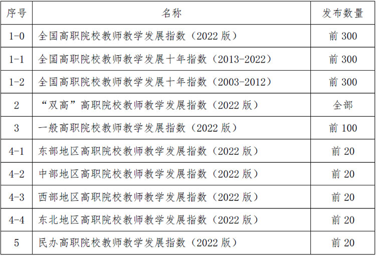 表2 2022版全国高职院校教师教学发展指数清单名称一览表
