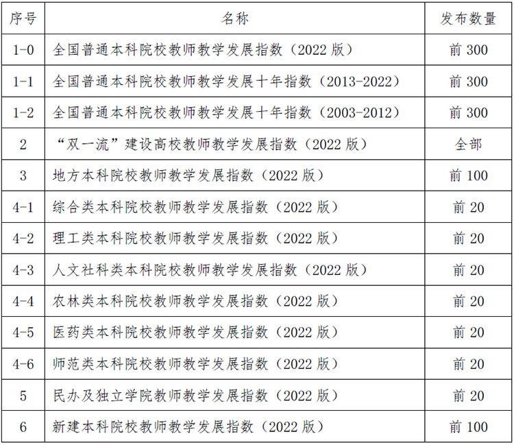 表1 2022版全国本科院校教师教学发展指数清单名称一览表