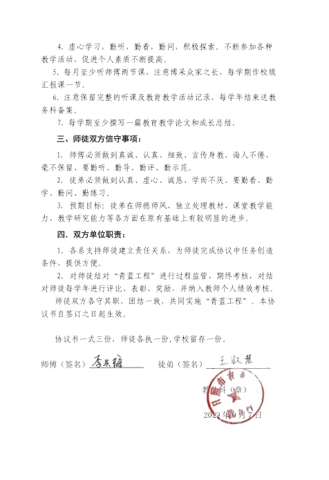 经过一年的帮扶指导,王淑慧在教学能力和综合素质方面取得了显著进步。在日照市教学能力比赛中,她凭借出色的教学设计、生动的课堂展示以及扎实的专业功底,荣获三等奖。这一成绩的取得不仅是对她个人努力的肯定,也是“青蓝工程”帮扶成效的直接体现。更重要的是,王淑慧在教学实践中更加注重学生主体性的发挥,课堂氛围更加活跃,学生的学习兴趣和成绩显著提升。同时,她也学会了如何高效备课、如何与学生有效沟通、如何运用现代教育技术手段提升教学效果等教学技能,为她的职业发展奠定了坚实的基础。