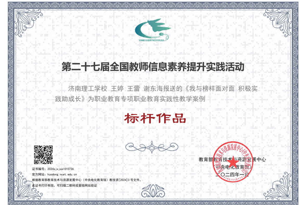 王婷,女,中职思想政治课教师,高级讲师,齐鲁名师建设工程(2022-2025)人选