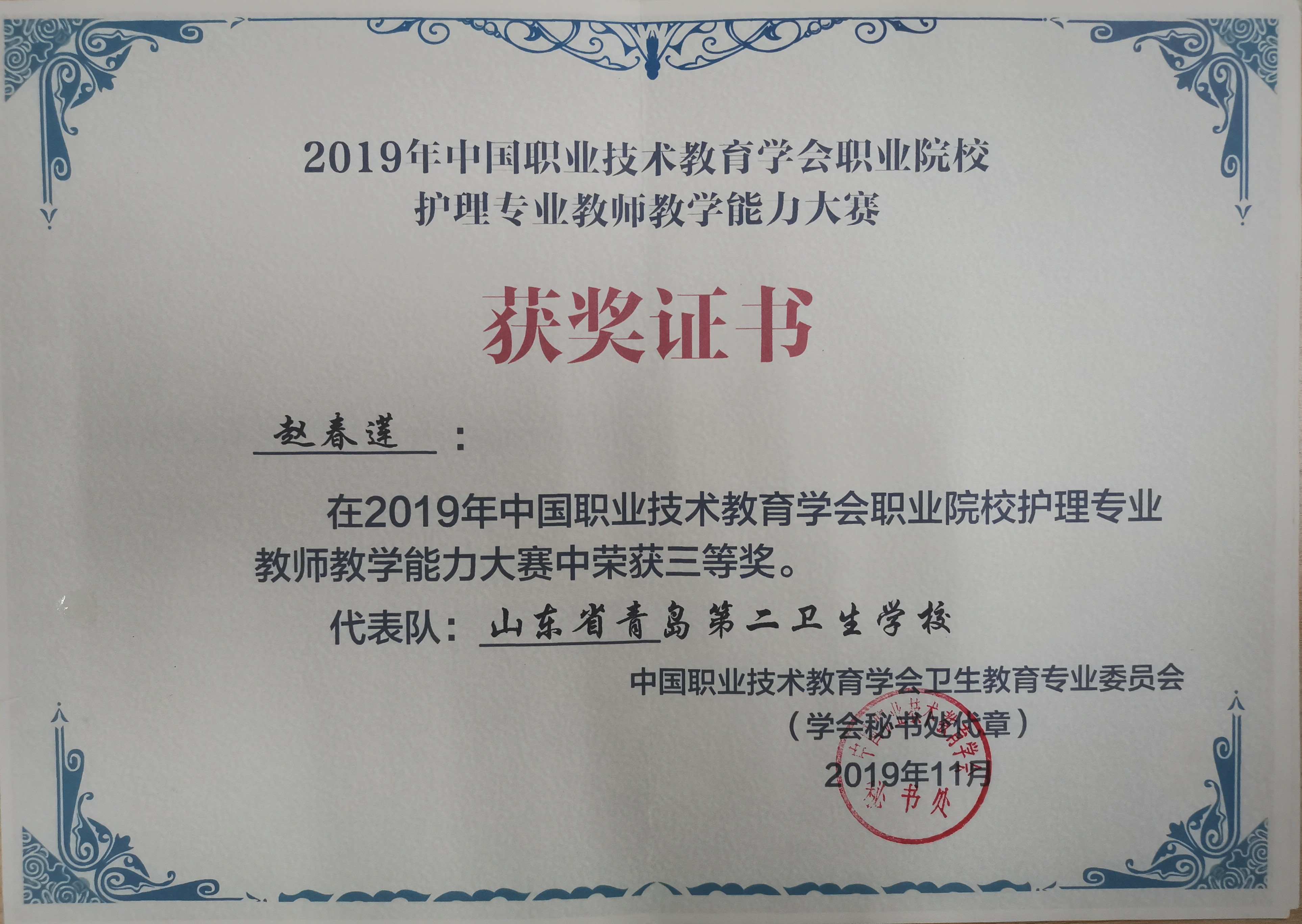 赵春莲:2019.11全国护理专业教师教学能力比赛三等奖