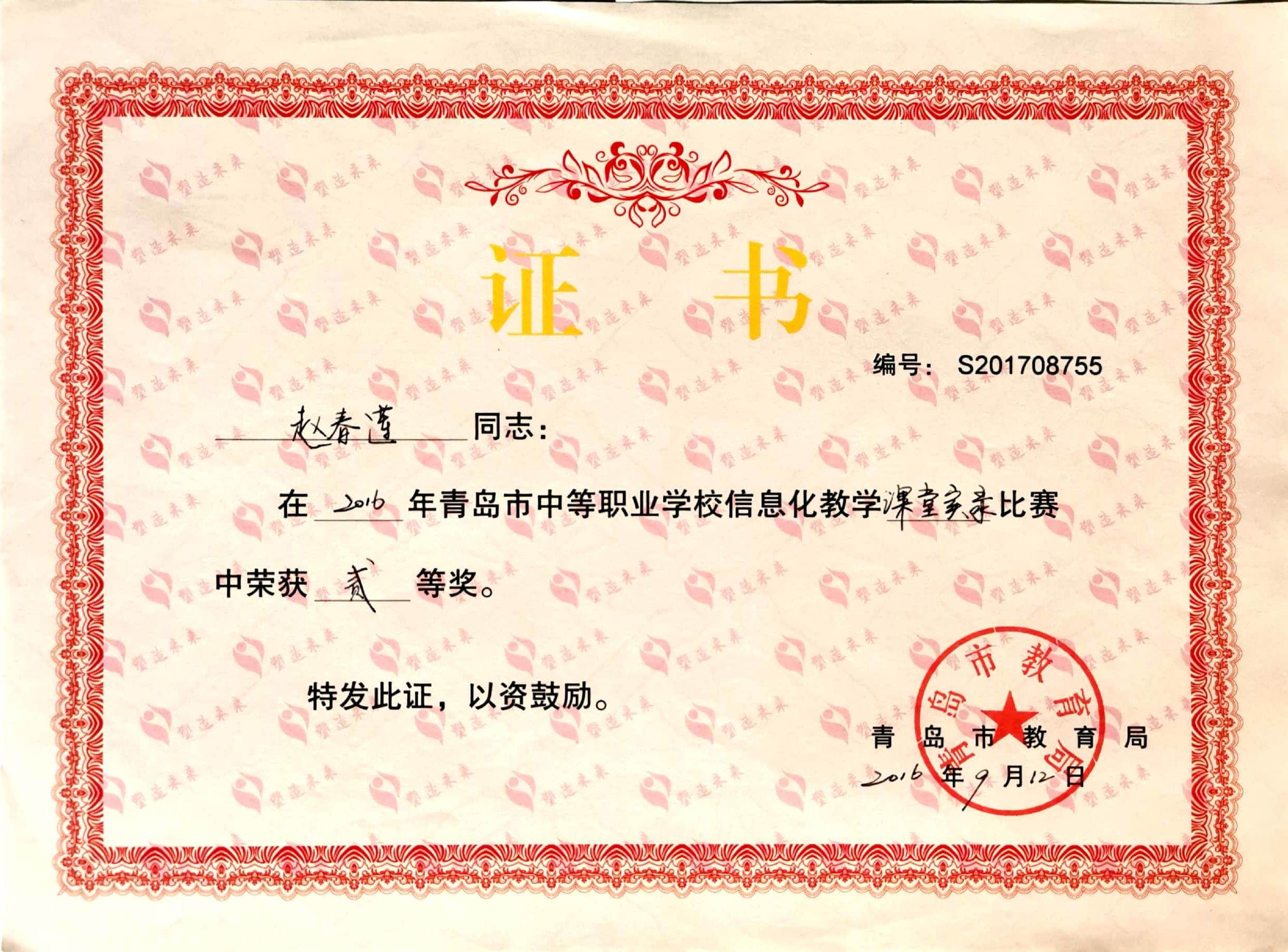 赵春莲:2016年赵春莲青岛市中等职业学校信息化教学课堂实录比赛二等奖