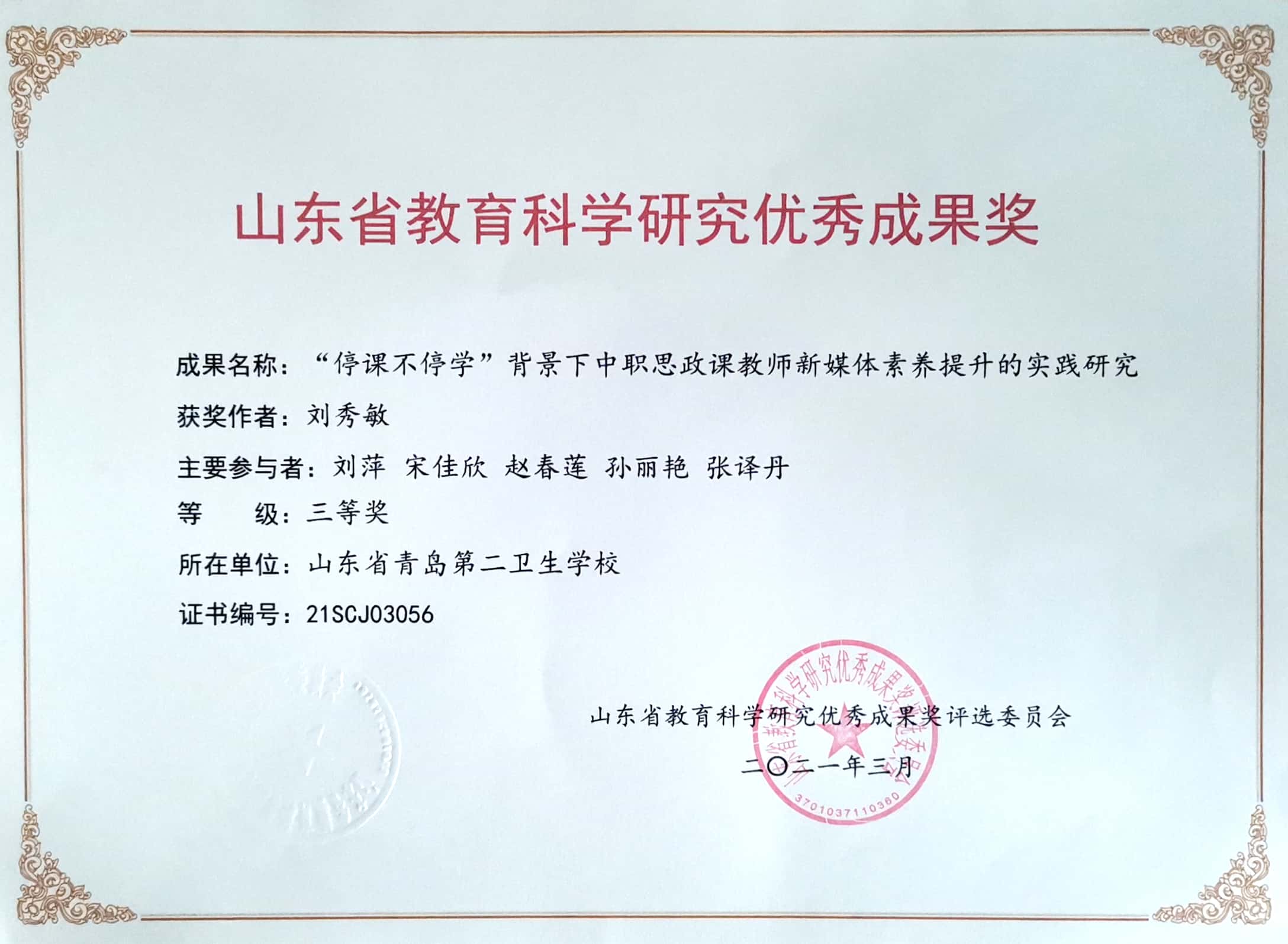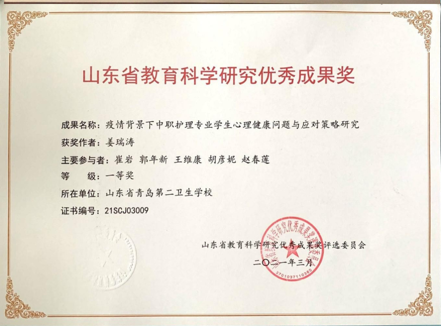 赵春莲:山东省教育科学研究优秀成果奖