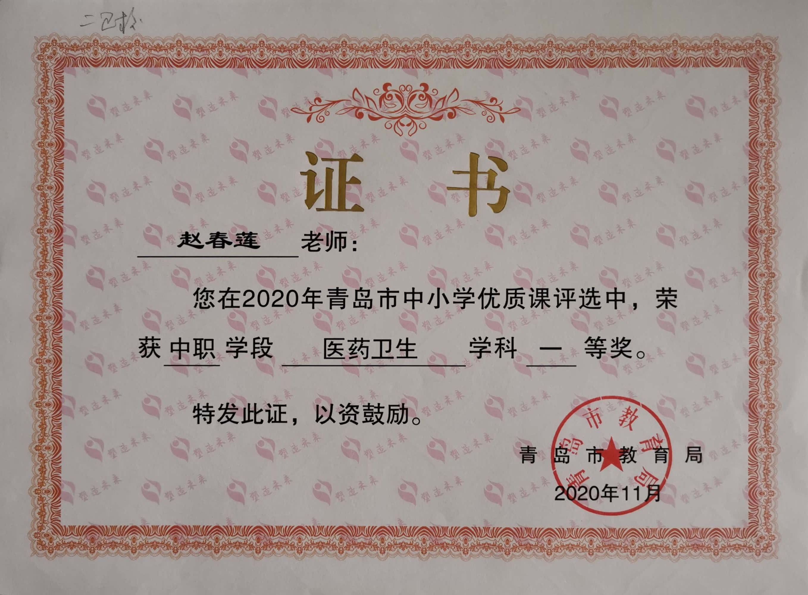 赵春莲:2020.11青岛市微课程比赛一等奖