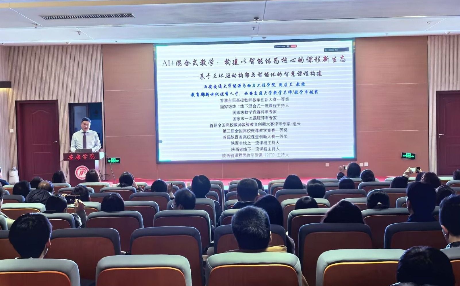 为持续推动数智赋能教育教学改革,全面提升教师混合式教学与智慧课程建设水平,12月4日下午,我校在江北校区图书馆报告厅成功举办智慧课程建设专题培训,130余名专任教师参会。培训由教师发展中心主任付争方主持。