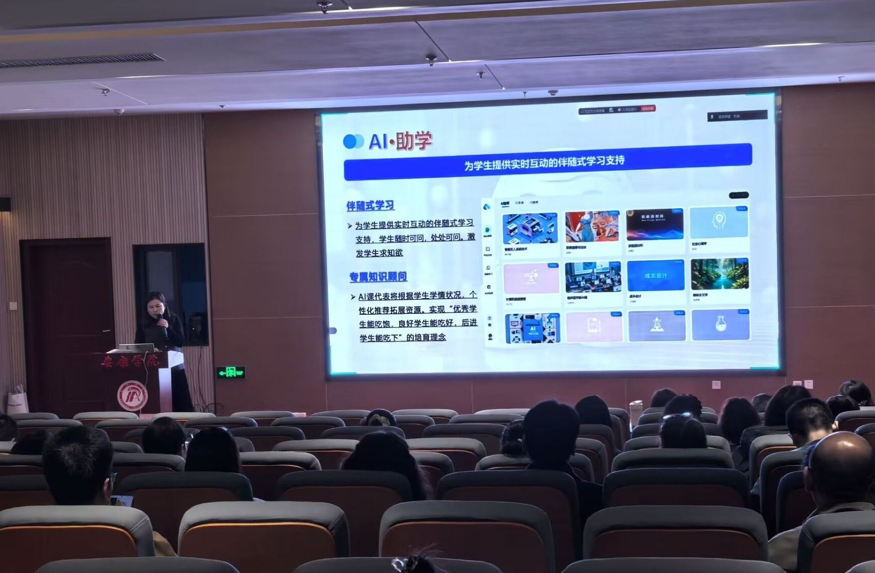 智慧树AI事业部资深产品经理石洁以《AI重构教学场景智慧课程创新设计实训》为题开展实操指导。她紧扣国家相关政策要求,解读北京、山东、河南等地高校智慧课程建设标准与核心内容;结合“智慧树”教学平台落地案例,生动展示AI助教、AI助学、AI助管、智能体交互式教学等技术工具的应用场景,详细讲解其赋能混合式教学的实现路径,以及在提升教学效率、优化学生学习体验等方面的具体成效。