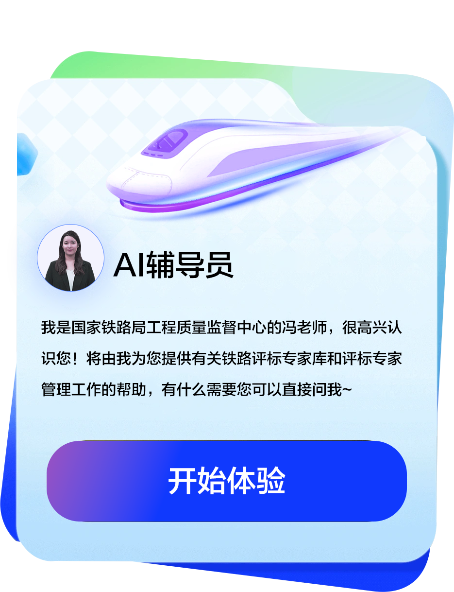 我是国家铁路局工程质量监督中心的冯老师,很高兴认识您!将由我为您提供有关铁路评标专家库和评标专家管理工作的帮助,有什么需要您可以直接问我~