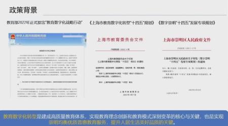 本课程以崇明区教育数字化转型为鲜活样本,聚焦"教学数字化如何驱动区域教育高质量发展"这一核心命题。课程通过区域实践案例切入,系统解析五大转型路径即“基座筑基、场景重构、资源融通、治理提效、素养赋能”,帮助教育工作者充分运用数字化手段,突破传统教育局限,掌握数字化教学工具的运用,实现精准教学和个性化学习,优化教学流程,为学生提供更优质、更高效的教育体验。