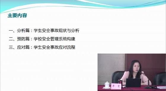 学校危机应对三部曲 主讲人:李雯 课程简介 随着学校安全问题的突显,学校危机管理日益受到教育工作者的重视,并开始有意识地应对,学校危机管理成为学校管理的重要组成部分。本课程中,主讲人基于现状分析、安全管理系统构建和安全事故应对三个角度,对学校安全工作进行了全面、系统、深入的介绍和分析。 课程时长 135分钟 录制时间 2016年8月 课程提纲 一、分析篇:学生安全事故现状与分析 1.学生安全事故的现状 2.安全事故的概率分析 3.安全事故的原因分析 4.安全事故的案例分析 二、预防篇:学校安全管理系统构建 1.不容忽视的学校安全工作 2.学校安全工作的基本定位 3.学校教育教学活动的安全风险分析 4.学校安全保障系统 5.构建学校安全保障系统的管理工具 三、应对篇:学生安全事故应对流程 1.领导小组成员构成与职责 2.领导小组成员基本素质 3.领导小组成员工作方式 4.事故处理原则与要点 5.事故处理阶段与任务 6.媒体应对和网络舆情管理 7.事故收尾与善后工作 8.事故快速救助处理工具箱
