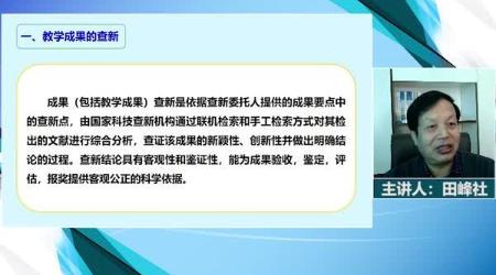 本课程中,主讲人首先对教学成果的查新进行讲解,然后对教学成果的鉴定、申报书填写、及其佐证材料的制作等进行逐一介绍。其中对申报书填写的七个重点内容分六块进行详细讲解,通过本次课程,可了解教学成果奖申报填写的具体要求,撰写重点等。
