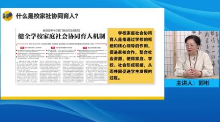 校家社协同育人制度是一种教育管理模式,旨在通过学校、家庭和社会的共同努力,实现对孩子全面发展的教育目标。本课程中,主讲人从是什么、为什么、怎么做三个角度,阐述了家庭、学校、社会对孩子成长的影响,提出要明确育人的未来愿景,致力于学校、家庭、社会之间紧密合作,共同为孩子提供良好的教育环境和资源。