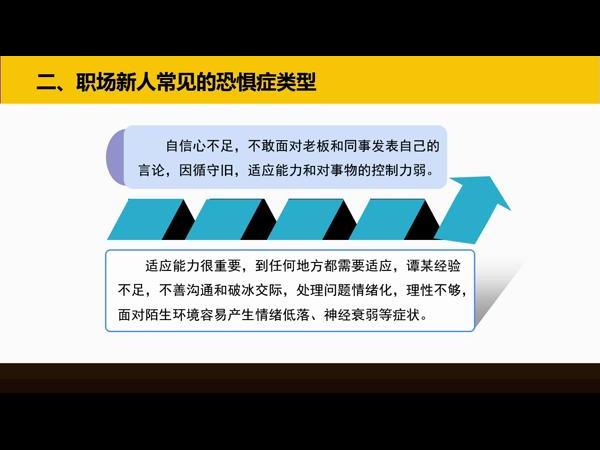 职场恐惧症是指由于职场工作压力或人际关系问题而产生的持续的和不必要的恐惧,并不得不采取回避行为为特点的一种病症。在本课程中,主讲人从职场恐惧症的定义入手,详细介绍了职场新人常见的恐惧症类型,并且提出了如何克服恐惧症的建议。